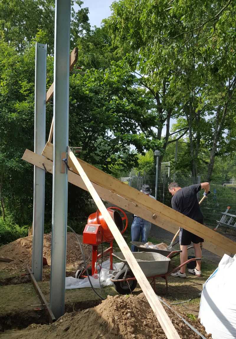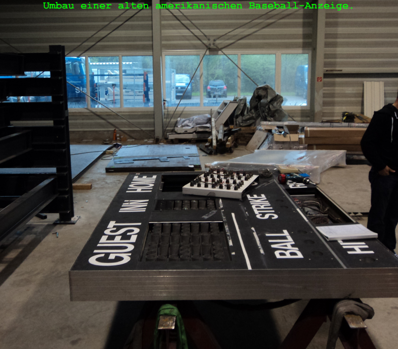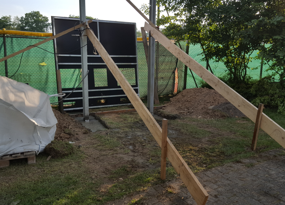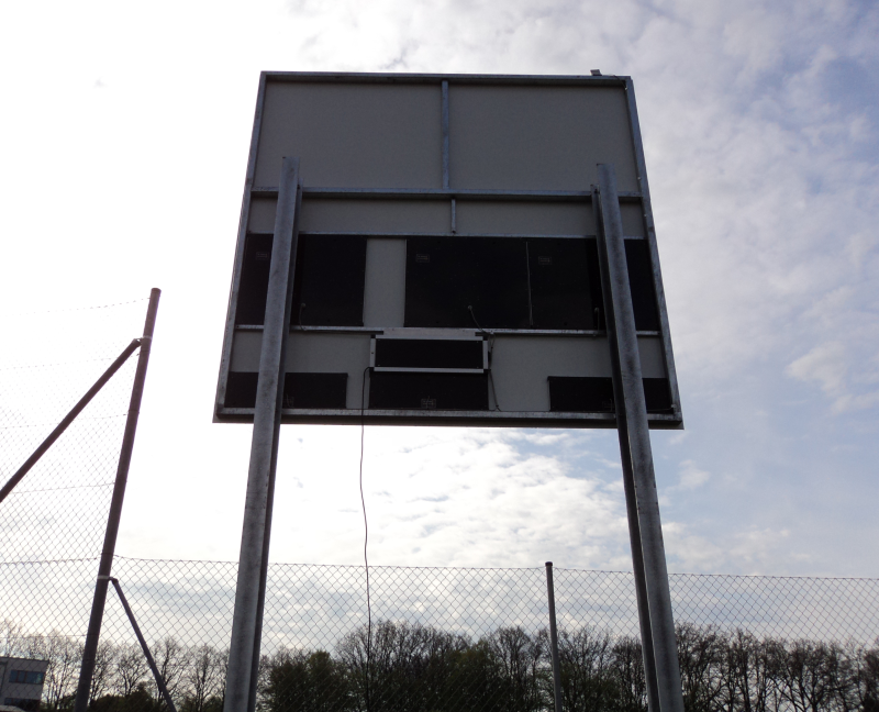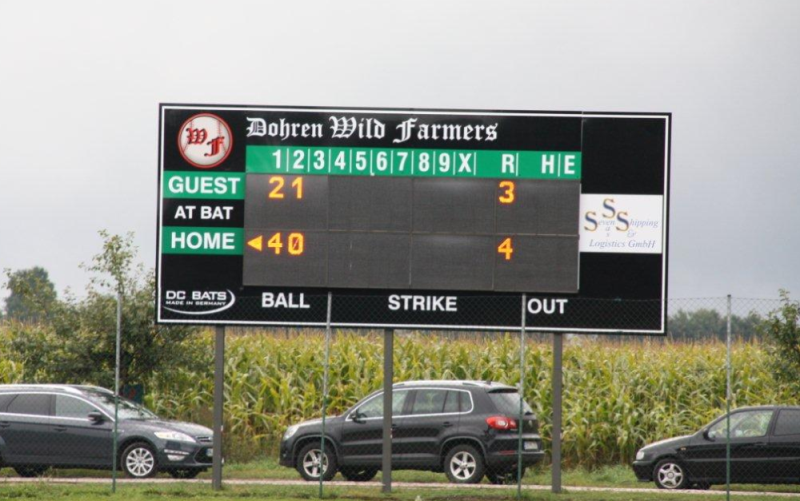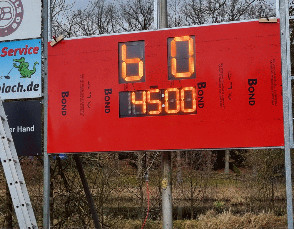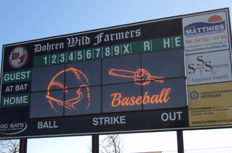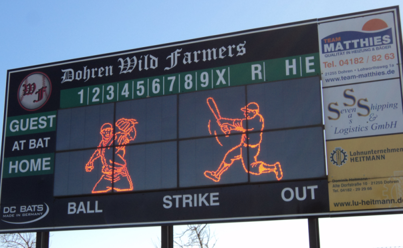 Seit dem 31.08.2019 steht ein Scoreboard bei den Baseball-Jungs, wurde erstmal provisorisch an ein Gerüst montiert. 2020 wird das Gerüst durch Stahlträger ersetzt.