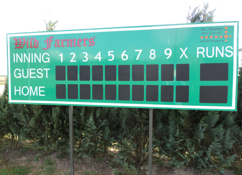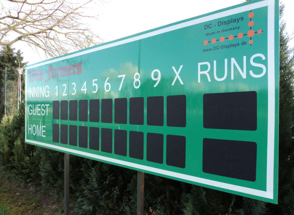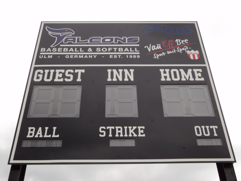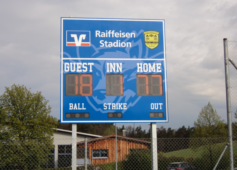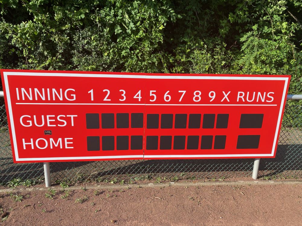 Seit dem 16.April 2015 steht am kleineren Baseballfeld eine Anzeigetafe zum Anschreiben der RUNs für GUEST und HOME.