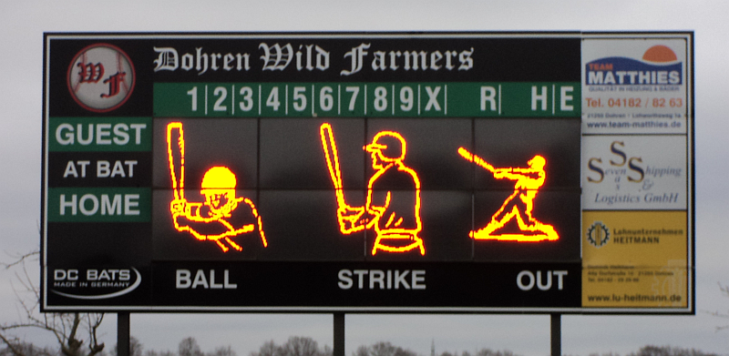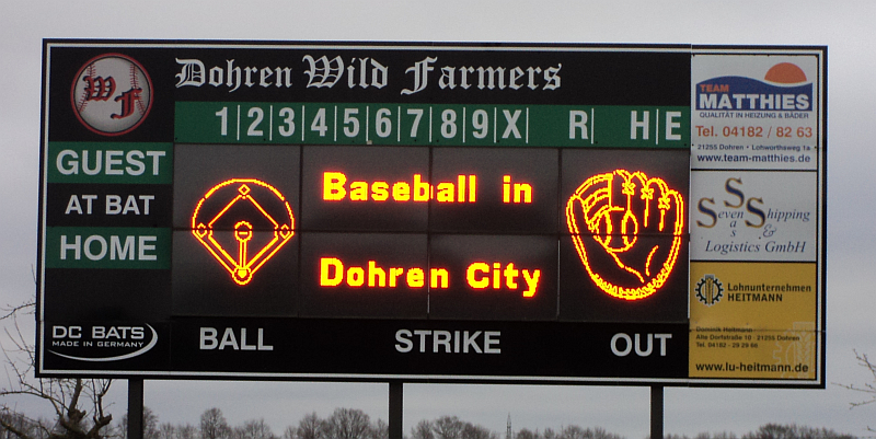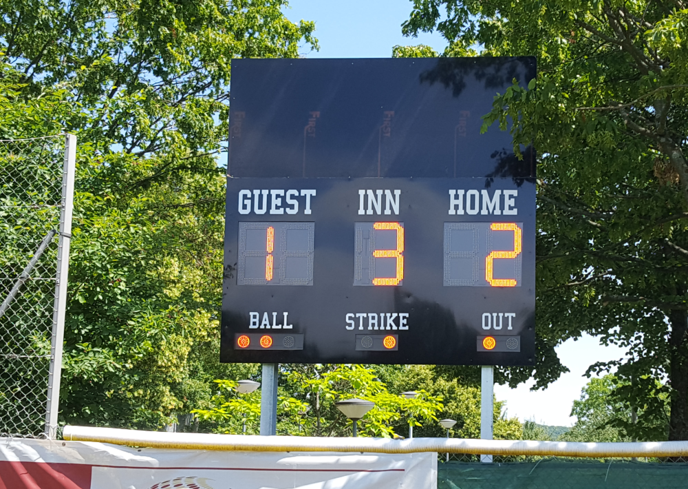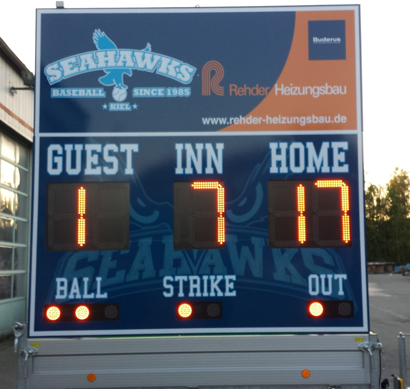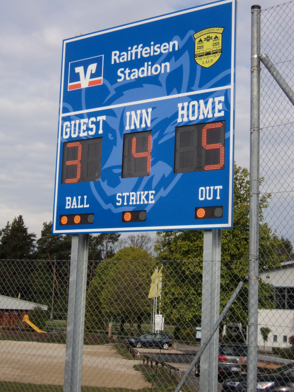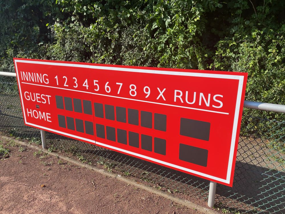 Seit dem 16.April 2015 steht am kleineren Baseballfeld eine Anzeigetafe zum Anschreiben der RUNs für GUEST und HOME.