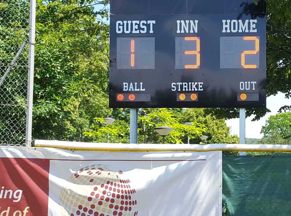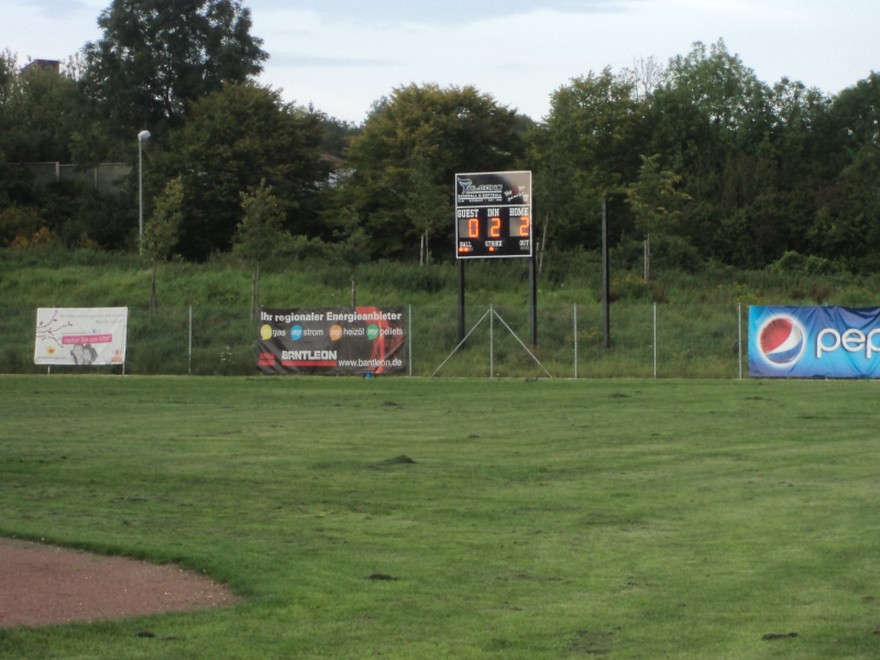 Seit dem 20.06.2019 steht ein Scoreboard hinter dem Centerfiel-Zaun in Bad Homburg.