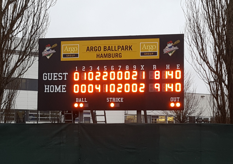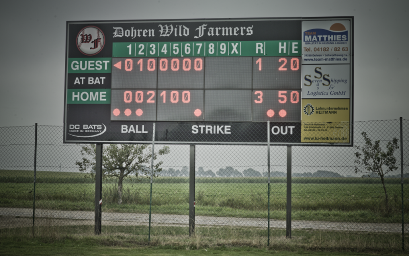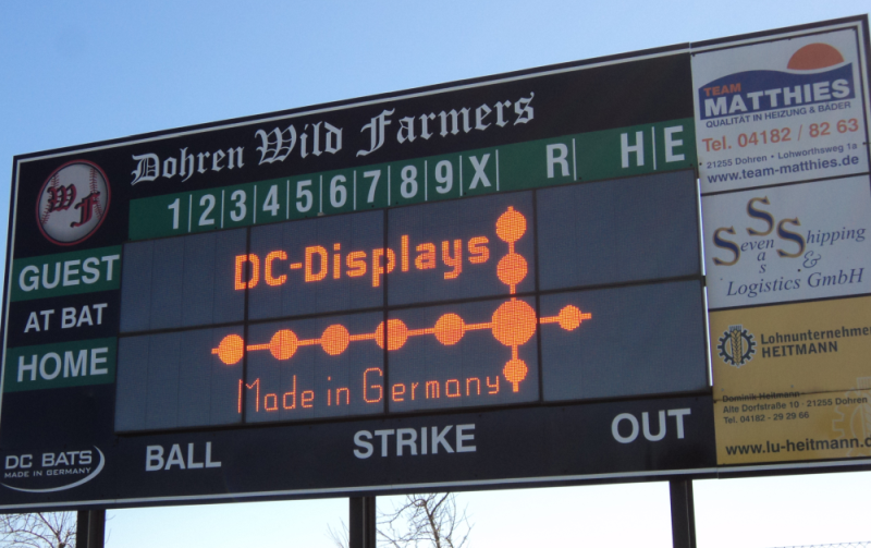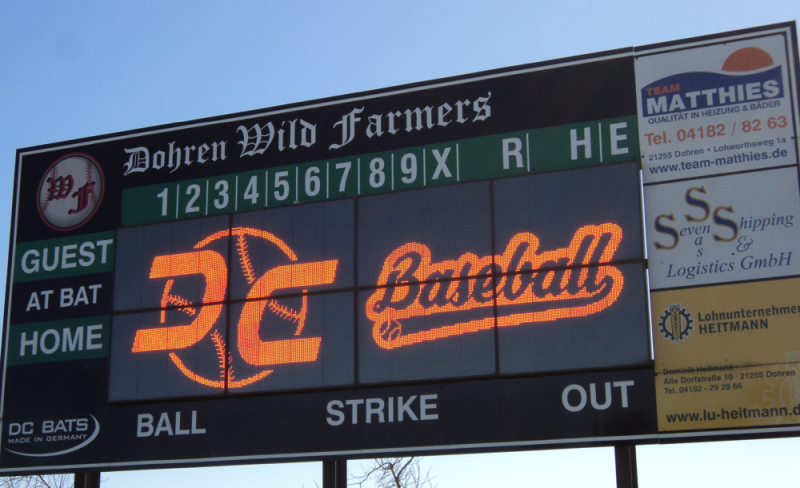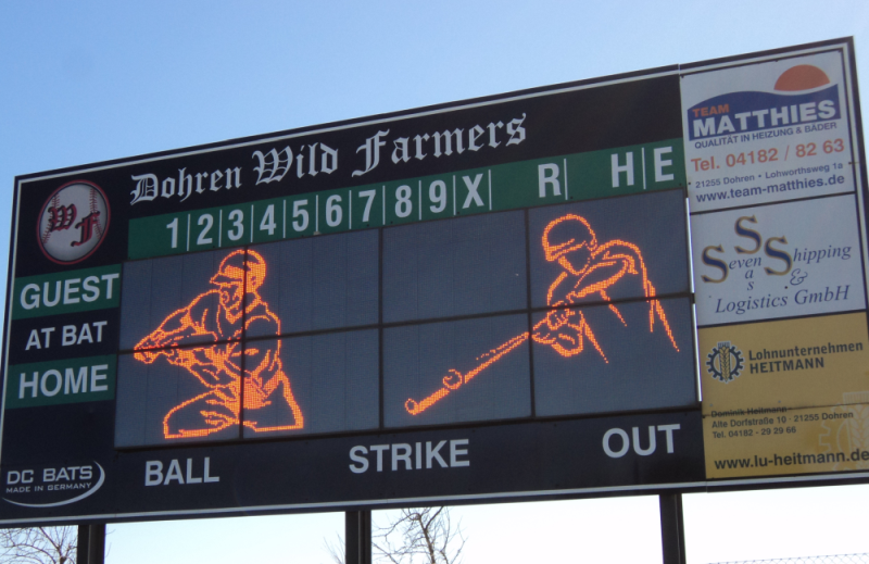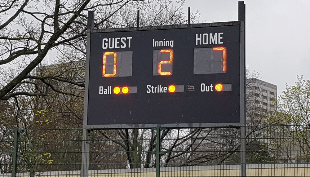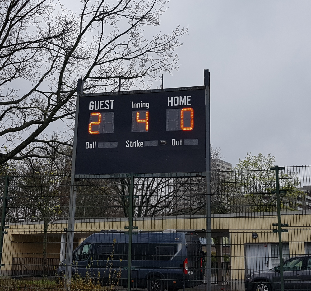 Seit dem 15.05.2023 steht ein Scoreboard hinter dem Outfield-Zaun in Berlin.