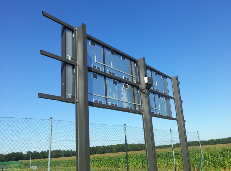 Am 08.12.2019 steht zwischen 2 Baseballfeldern die neue Baseball-Anzeige mit großer Werbefläche.