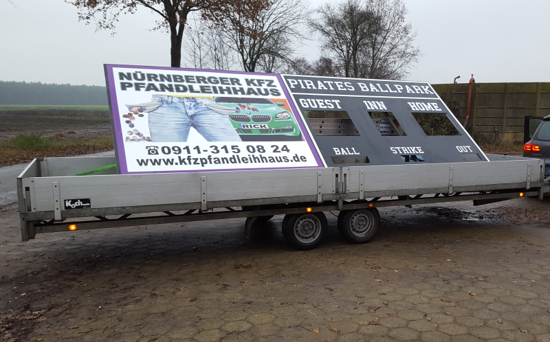 Eine outtake Baseball-Anzeige musste für Kiel her. Sie wurde im August 2017 an den Sponsor übergeben und wird zu jedem Spieltag an den Spielfeldrand im Outfield gefahren.
