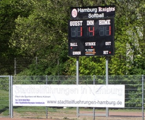 Am 13.05.2016 wurde die Anzeige bei den Knights offiziell eingeweiht. Sie steht bei den Softball-Damen.
