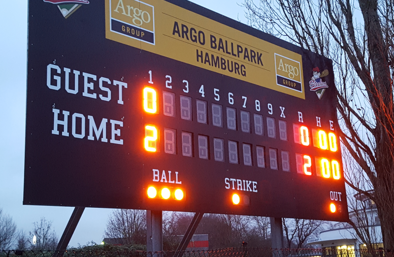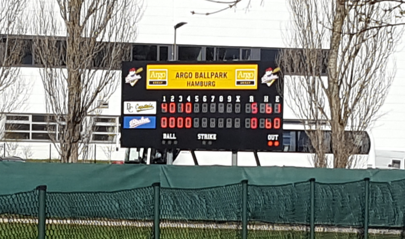 Im Herbst 2016 wurde ein kleines tragbares Scoreboard an die Baseballer in Bergedorf übergeben.
