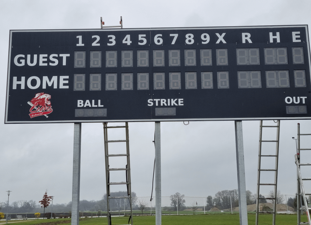 Seit dem 22.03.2025 steht ein neues großes Scoreboard hinter dem Outfield-Zaun bei den Red Lions, einige Bilder vom Aufbau.